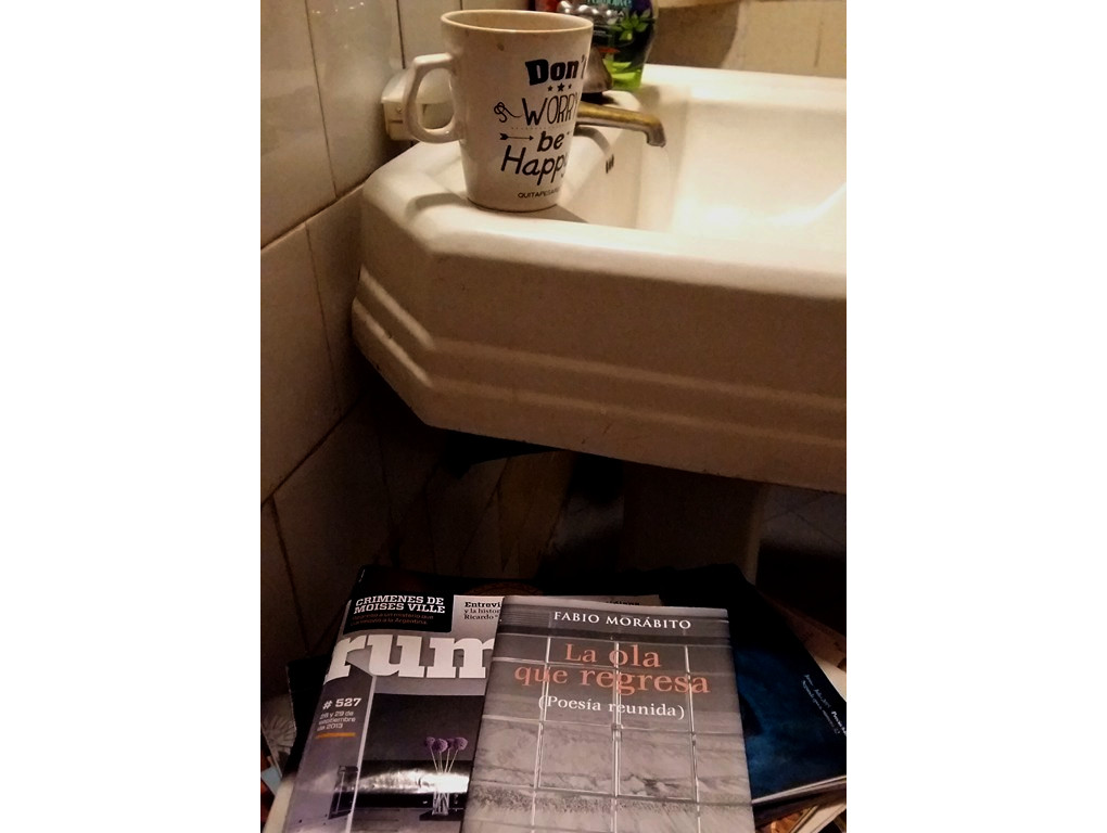 sentado en el baño
